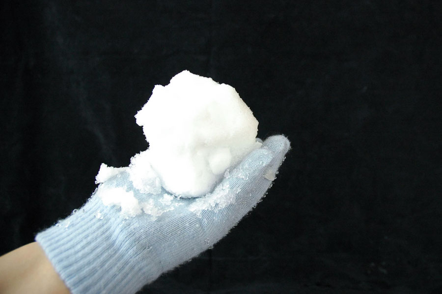 Forme einmal mit und einmal ohne Handschuhe einen Schneeball!