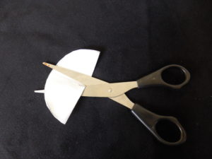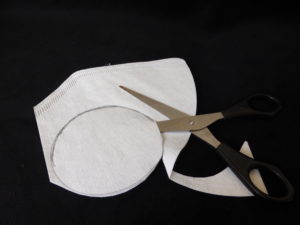 In die Mitte schneidest du ein Kreuz für den „Docht“. Diesen Docht schneidest du aus dem restlichen Filterpapier aus.