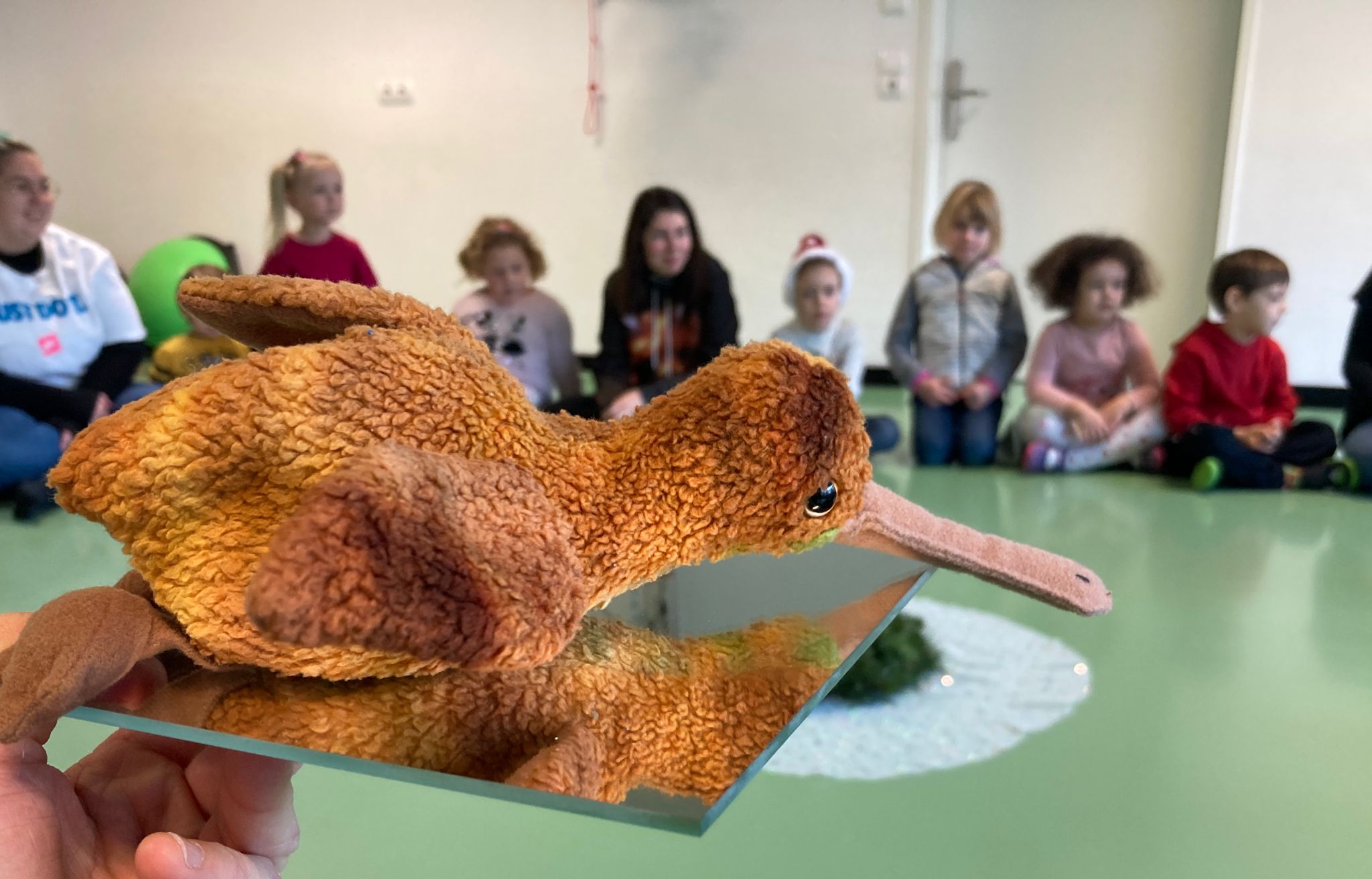 Das KIWI Team kommt einen Vormittag lang in die Bildungseinrichtung und arbeitet dort mit den Kindern: wir starten im Sesselkreis und wecken gemeinsam unseren KIWI auf - verschlafen kommt er aus seinem Schlafsack und bringt viele Fragen mit. Er verwechselt oft Begriffe und hat ganz wenig Ahnung vom Forschen und Experimentieren!